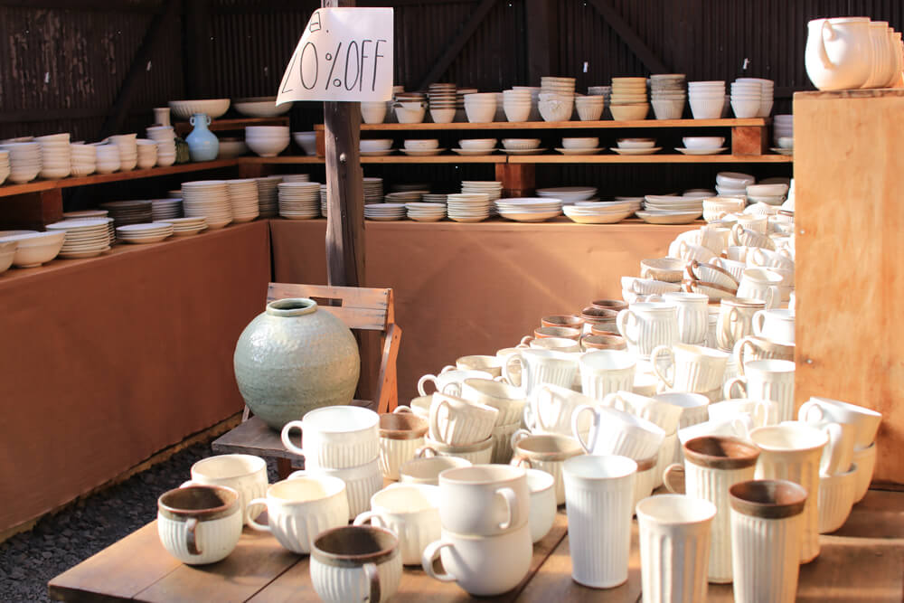 町内の窯元、商社による蔵出し販売のほか、クラフト作品、野菜や食品などのフリーマーケットも行います。