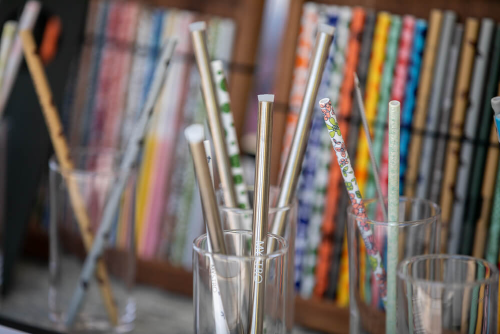 ドリンクは、美濃焼ストローのMYSTOROで飲むことができます。