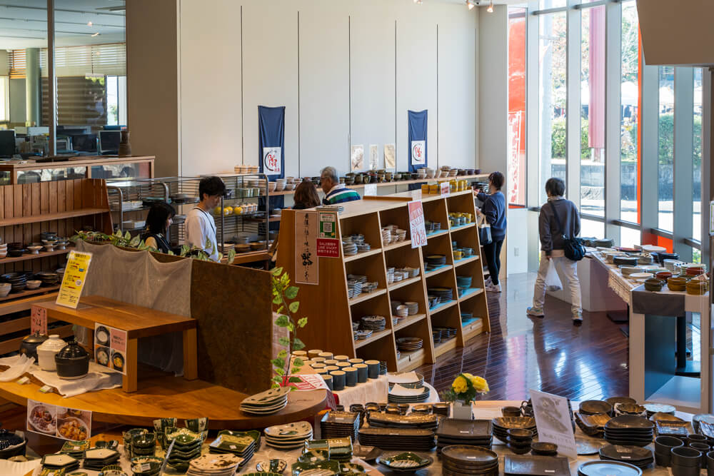 美濃焼伝統産業会館では、現代茶陶展等の優秀賞作品の展⽰や企画展を開催。