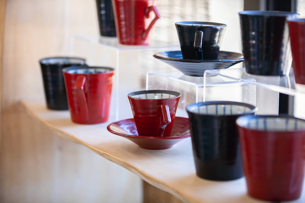 漆のしっとりとした手触りと心地よい重量感を感じさせる陶。二つの日本伝統工芸が出合い居心地の良い空間を作る「漆陶」