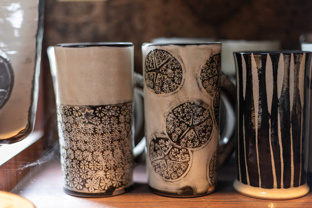 化粧土を用い、撥水やふき取りなどを行い、土との色の違いを楽しめるようにしています。